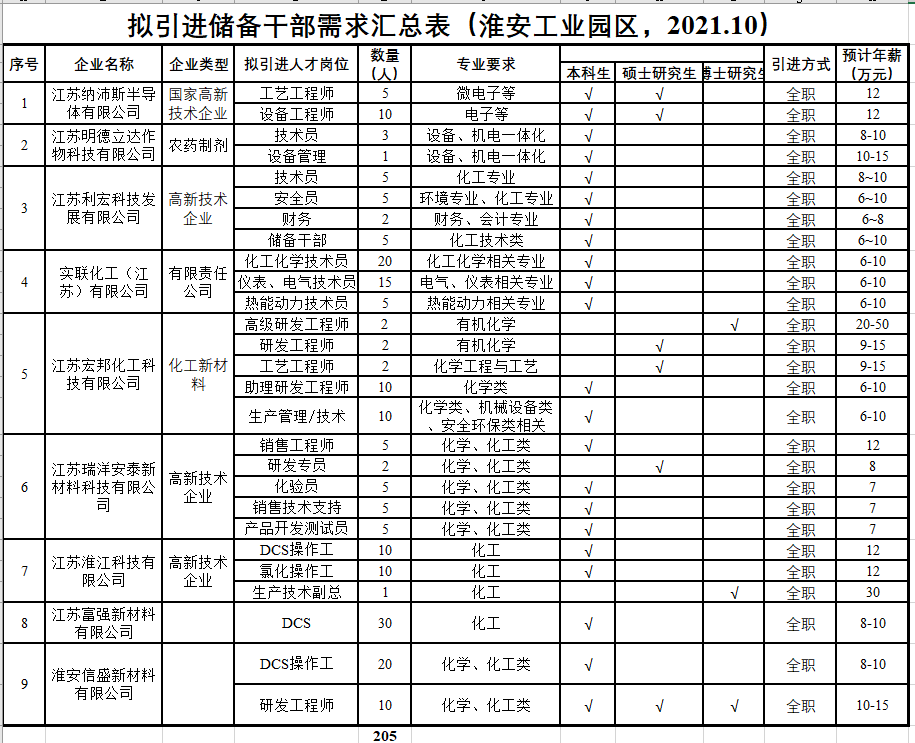 10月21日-26日,化院举办2018级毕业生网络招聘,本次网络招聘为淮安市工业园区高端企业,企业需求量非常大,高端岗位占一半以上。有意向同学请在以下汇总表中挑选意向岗位,简历可通过学院QQ年级平台投递,也可直接投递给企业。
