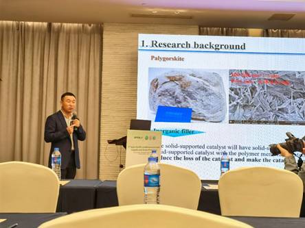 2021年4月23日至25日,由中国化工学会离子液体专业委员会主办,苏州大学和中国科学院过程工程研究所共同承办的第七届亚太地区离子液体与绿色工艺会议(APCIL-7)在苏州独墅湖世尊酒店召开,77779193永利官网先进膜材料与过程团队赵宜江教授应邀主持第四分会场(聚离子液体的应用),李梅生老师作题为《Preparation of poly(vinyl alcohol)/palygorskite-poly(ionic liquids) hybrid catalytic membrane of facilitate esterification》的分会场邀请报告,介绍了课题组将聚合离子液体应用于催化分离膜的研究进展。