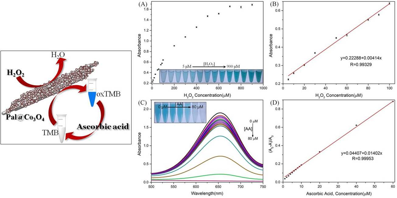 基于纳米材料的人工模拟酶(又称纳米酶),由于其可调节的活性、低成本和优良的耐久性,已成为天然酶的一类理想替代品,广泛应用于生物传感、环境修复和疾病诊疗等领域。然而,很多纳米酶在合成过程容易发生团聚,例如具有多种酶催化性能的Co3O4纳米颗粒,由于磁性吸引力和长程范德华力的作用,此类纳米颗粒倾向于聚集在一起,从而削弱了它们的酶样特性,导致其催化活性降低。为解决这一问题,本研究利用凹凸棒石天然的纳米棒状结构,基于其稳定性高、比表面大等特点,通过简单的水热方法,制备了一种以凹凸棒石为骨架材料、均匀分散Co3O4纳米颗粒的新型人工纳米酶。实验结果表明,所构建的凹凸棒石-Co3O4纳米复合材料,具有较高的类过氧化物酶活性,可以催化H2O2氧化3,3,5,5-四甲基联苯胺得到有色产物,进一步以比色法构建了测定H2O2和抗坏血酸的简单高效的传感器,并成功应用于模型样本中抗坏血酸的检测。本研究不仅为构建高效生物传感器提供了一类新型的人工过氧化物酶,还激励研究人员进一步探索其他基于凹凸棒石的纳米酶材料。