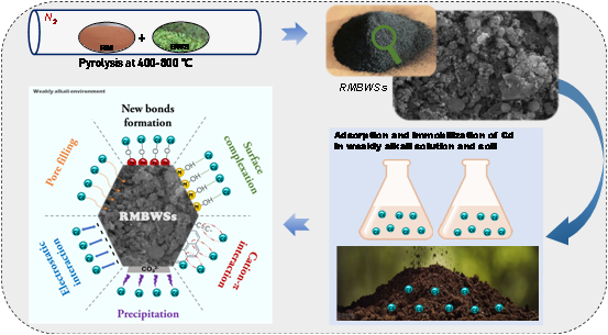 生物质炭材料因其大多呈碱性,并具有含碳量高、稳定性强以及表面官能团丰富等优点,在土壤重金属污染修复应用中备受关注。然而我国北方土壤多呈弱碱性,使用通过提高土壤pH值来实现钝化修复的钝化材料,其效果并不理想。为提高生物质炭材料在弱碱性环境中固定镉的能力,本文以赤泥和废弃豆虫皮为原料,采用共热解法一步制得赤泥改性豆虫皮生物炭。研究发现,该改性生物炭可以通过形成Fe-O-Cd键、表面络合、离子-π共轭等化学作用以及孔扩散、静电力等物理作用吸附固定镉离子,其最大吸附容量可达73.52 mg/g,与同类生物炭材料相比,应用优势明显。