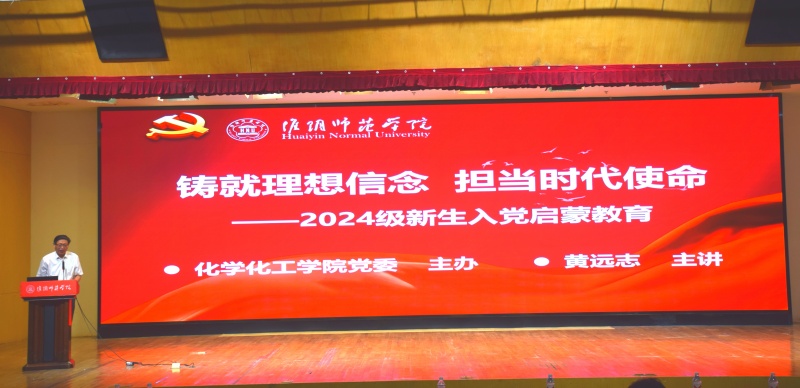 9月26日,化院关工委特邀原经管学院党委书记、校关委老同志黄远志为2024级新生举行入党启蒙教育报告。报告会由学院党委书记、关工委主任骆仁林主持,化院党委副书记、关工委副主任唐力、全体辅导员以及2024级新生参加报告会。