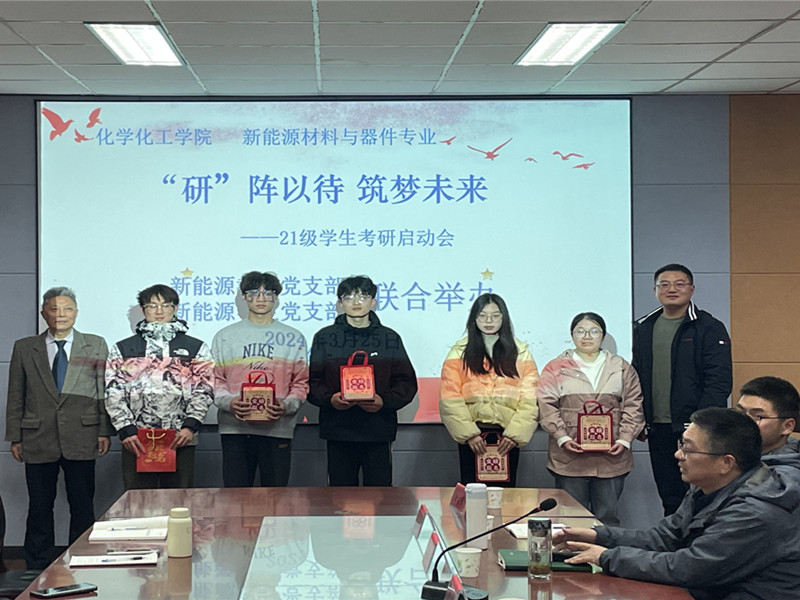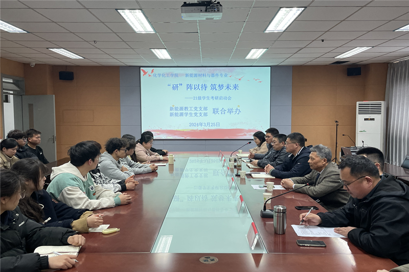在“勤奋求实创新奉献”主题教育开展期间,为促进学风建设,助力新能源专业21级学生备战考研,325日,化院关工委在学院219会议室举办“‘研’阵以待,筑梦未来”考研启动会。学院院长助理严玉波,退休教师周建峰,新能源教工党支部书记王晓宇,教师蒋叶涛、徐乐、王天石、李伟、郝子甲和2103班班主任唐果东以及全班学生参会。会议由李剑主持。