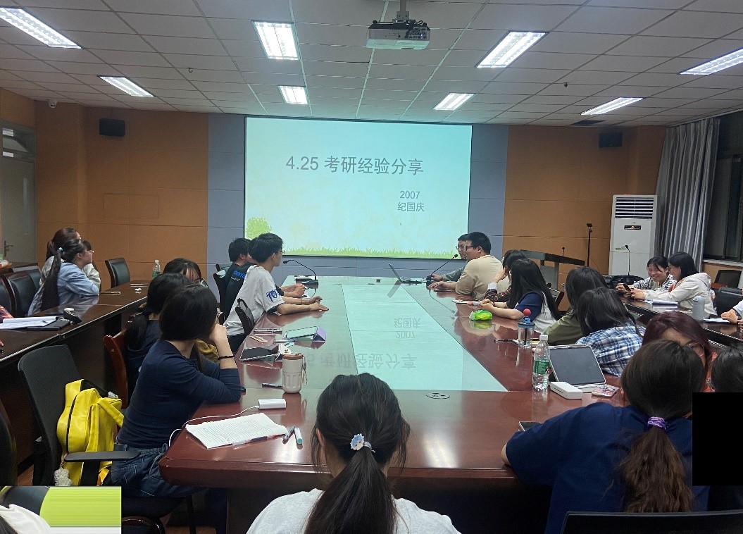 此次活动由阚老师组织进行,活动的开始由郝子甲老师来分享对考研以及考编方面的经验和看法,并回答同学们对考研方面的困惑,随后就由考研“上岸”的学长学姐们分享关于如何择校,如何复习以及如何选择考研资料等方面的经验。经验分享会由考理学的学长学姐开始分享,随后过渡到考工科的学长分享,最后由考编上岸的学姐分享考编经验,每位学长学姐分享玩完后就由同学们表达自己对于考研方面的困惑,与学长学姐们进行交流互动。活动的结束老师以及学长学姐们给予了25届考研以及考编学子真挚的祝福,也是这次考研经验分享会让我们懂得了什么是坚持,要怎样坚持;什么是拼搏,要怎样拼搏。攀山至项,行海达岸,披星戴月,终得其辉,仰望的触手可及,希冀的如期而至,迢迢天意不负杏斗者!这次分享会更让我们懂得了每一份努力必有回响。