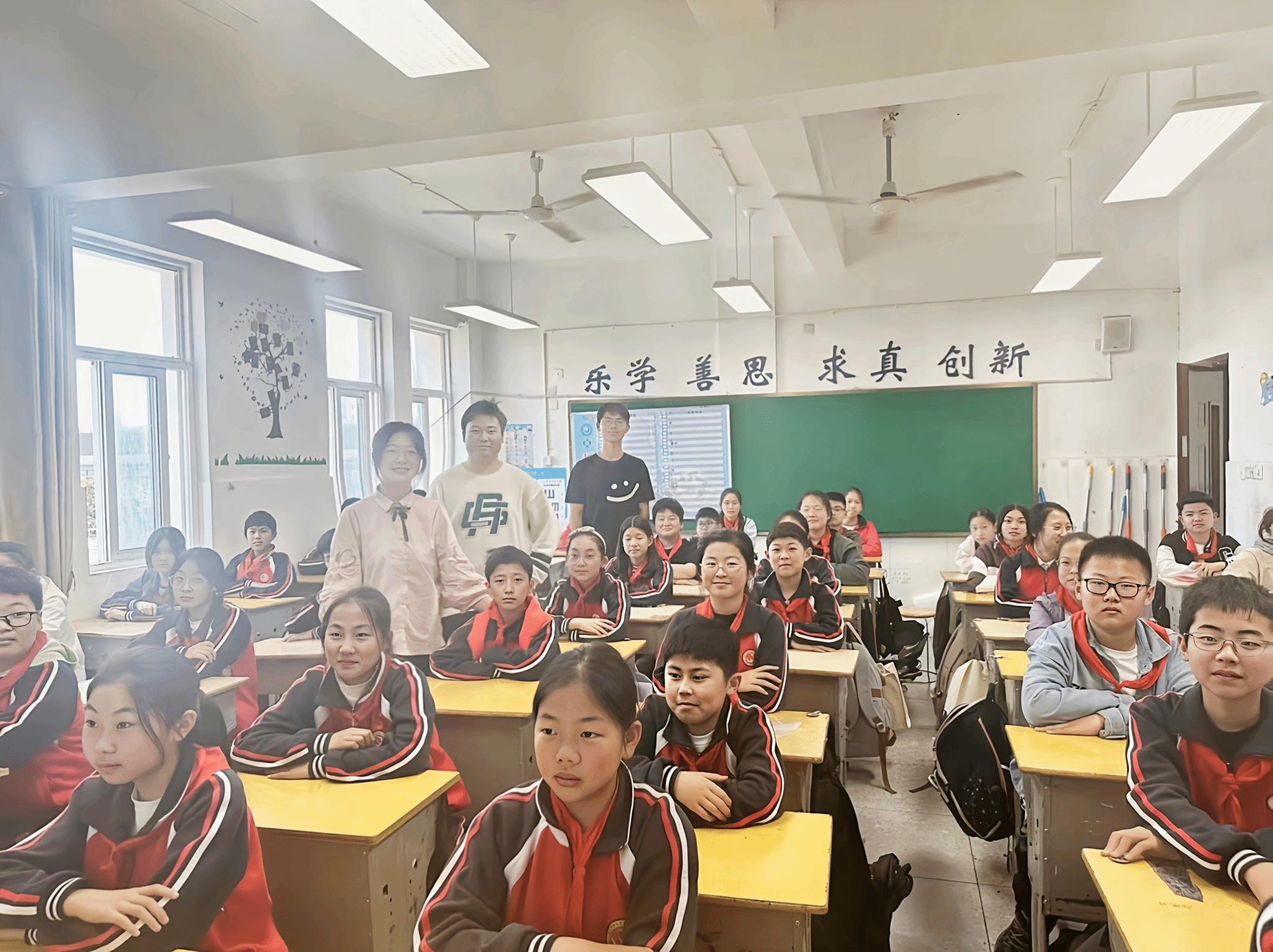 图为学生们与宣讲队员们合影