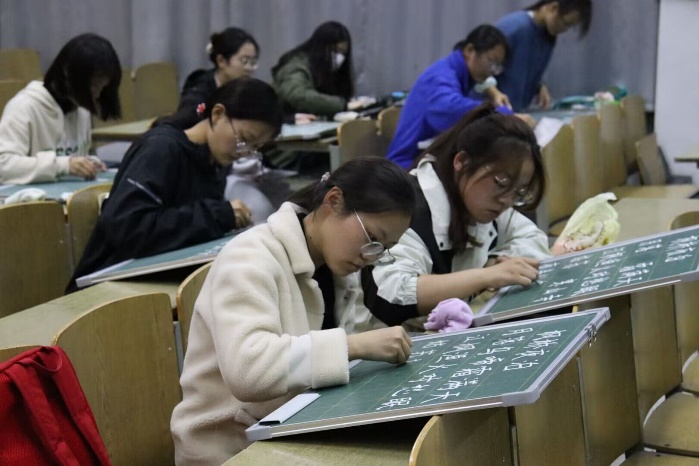 本次活动旨在提高学生的书法技能水平,为将来成为一名合格的教师打下坚实的基础。该活动需要各位同学按照所给的内容要求,在规定时间内完成钢笔字和粉笔字的书写。在紧张的比拼中,参赛者们以笔会友,展现了各自深厚的书法功底和独特的艺术风格,无论是楷书的端庄、行书的流畅,都让人赞叹不已。比赛结束后,社团负责人收齐钢笔字纸张,并收齐粉笔字照片,最后交由评委老师打分。