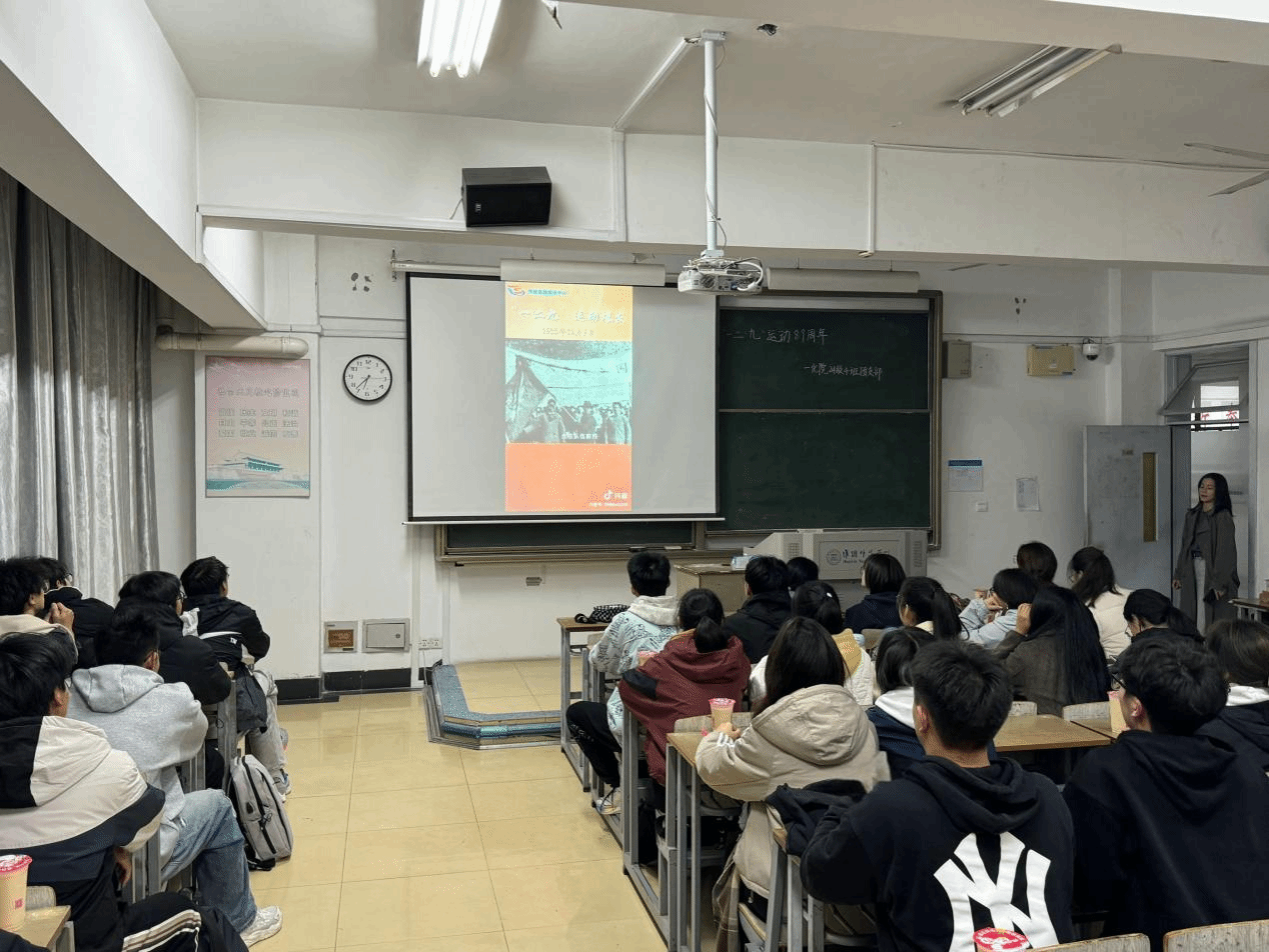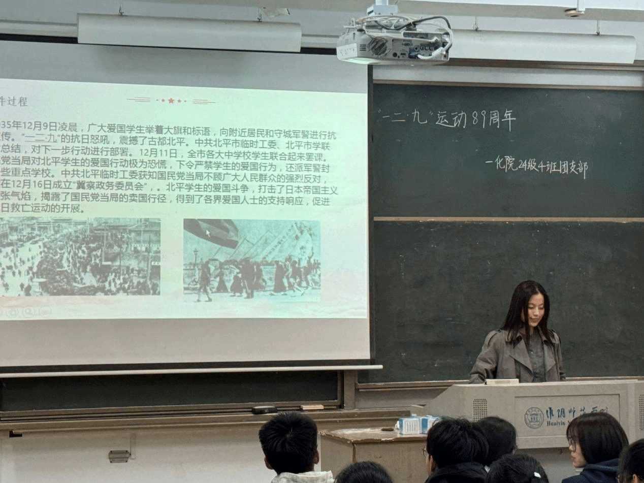 活动伊始,团支书黄玺蓉详细介绍了“一二·九”运动的历史背景,让同学们深刻了解到在那个特殊时期,青年学生们为了挽救民族危亡,所发起的这场伟大抗日救亡运动的重要意义。在团课期间,通过播放精心制作的PPT和视频资料,生动展现了当年“一二·九”运动中青年们的激昂抗争场景,同学们观看后热血澎湃。