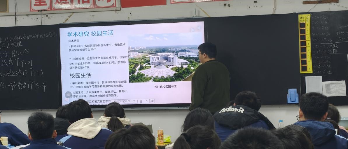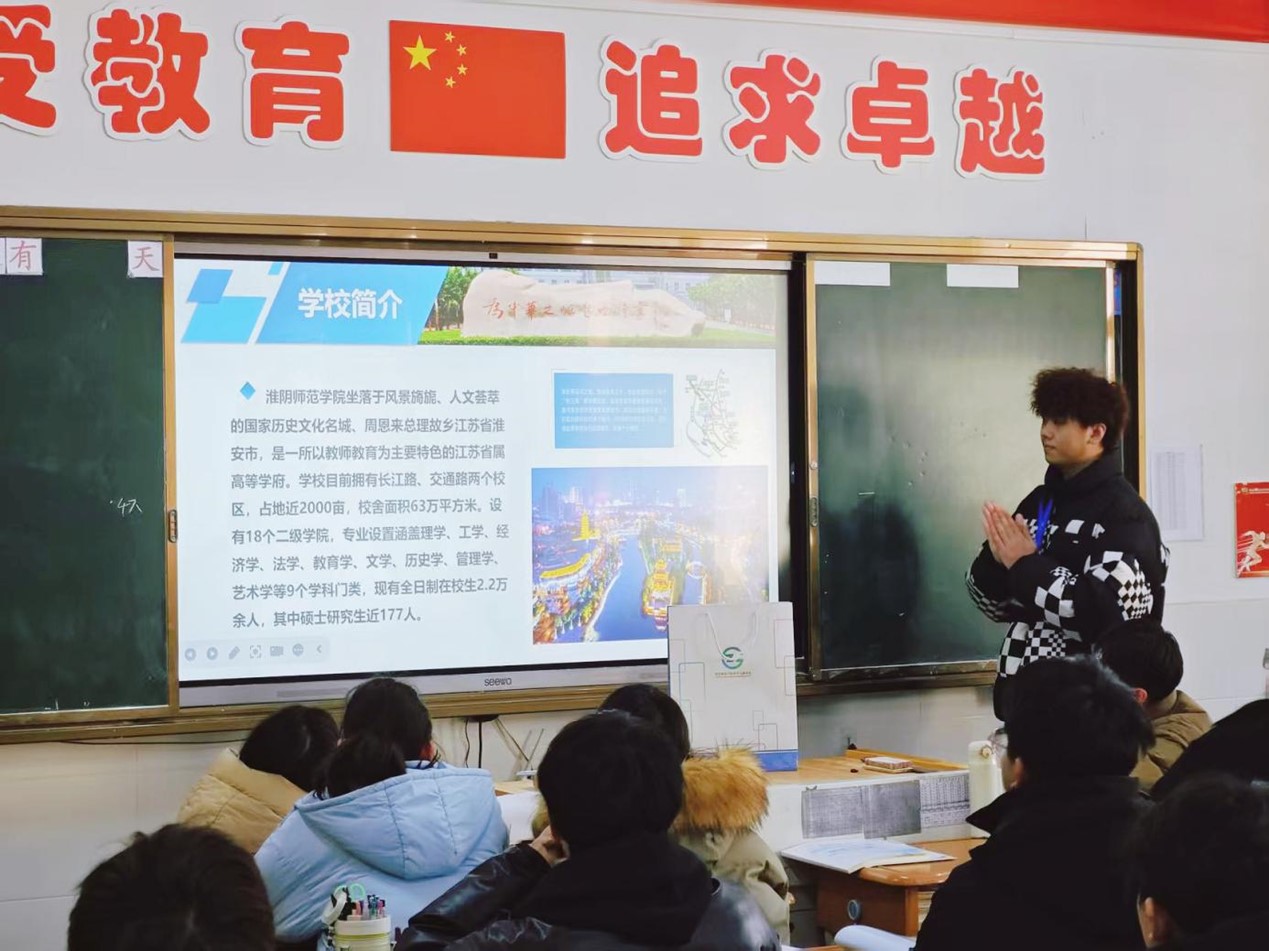 活动期间,温馨同学负责向学弟学妹们展示学校风貌与卓越教学水平。她结合精心制作、内容丰富的PPT,演讲生动精彩,每一个细节都描绘得栩栩如生,让同学们对淮阴师范学院有了直观且深刻的印象。汪涵同学凭借自身丰富的在校学习经历,毫无保留地分享了实用且正确的学习经验,为学弟学妹们指引方向,助力他们在未来的学习道路上少走弯路。孙正洋同学则充分发挥其幽默风趣的语言天赋,迅速点燃现场气氛。他的每一句话都充满感染力,不仅拉近了与同学们的距离,还全方位展现了淮阴师范学院的独特魅力与优秀风采。面对同学们的踊跃提问,陈辛蕊同学始终耐心倾听,认真思考,给出准确详实的回答。一来一往的交流互动中,为同学们答疑解惑,让他们对学校的方方面面有了更清晰的认识,学弟学妹们有效正确的经验。