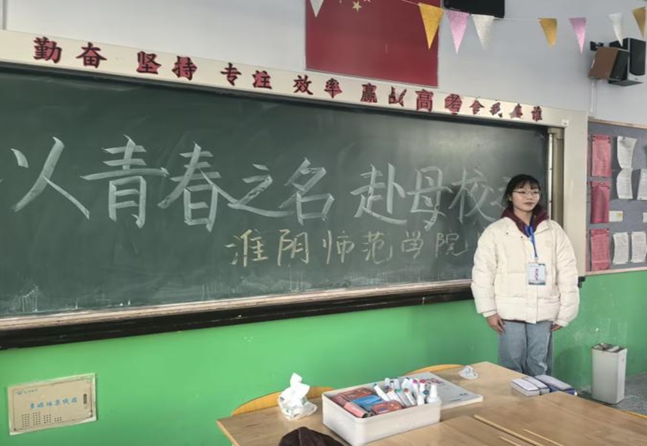 化院2408班温馨同学与汪涵、陈辛蕊、孙正洋三位同学组建了宣传小组,代表淮阴师范学院来到了高中母校南京宇通实验学校。