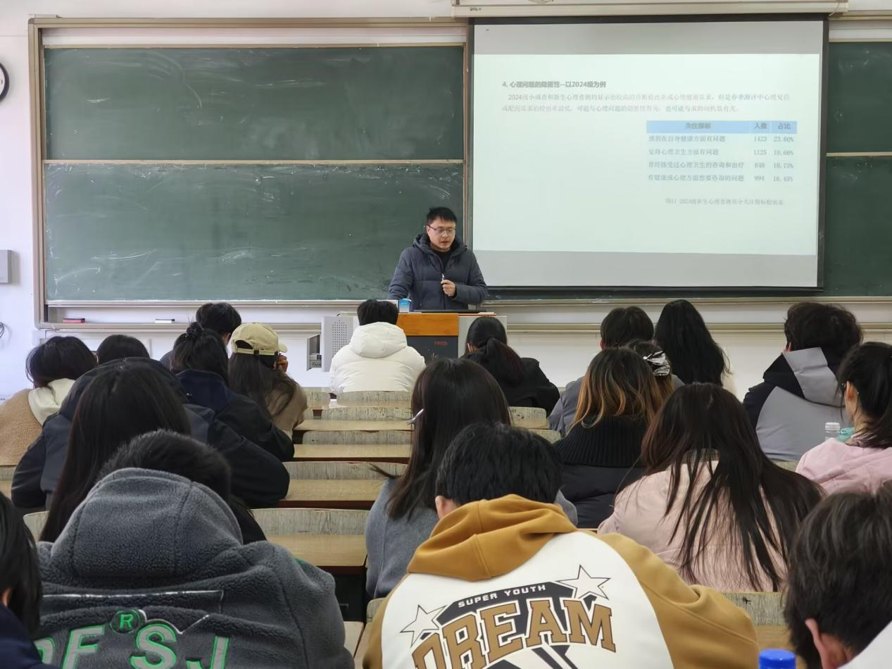培训伊始,全体成员通过自我介绍增进了解。随后,郝子甲老师结合过往案例分析与心理危机情景模拟,深入讲解大学生心理健康现状和问题。会议中,通过具体调查数据,郝老师指出当前心理危机防控形势依然严峻,并强调学生心理健康的重要性,要求各班心理班长和委员应定期了解本班同学心理健康状况,鼓励大家积极策划并参与心理健康活动。
