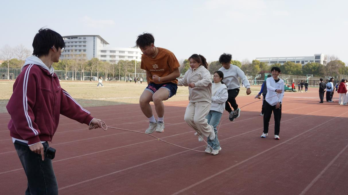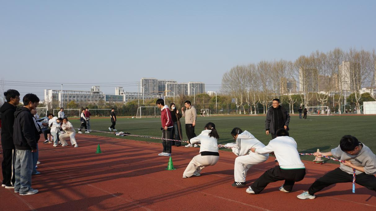 聚力协作,竞技生辉。在团体运动环节中,拔河比赛和趣味接力赛成为了众人瞩目的焦点。在拔河的赛场上,各组队员紧握长绳,口号声铿锵有力,在协作中深刻体验到团队的力量;而趣味接力赛则巧妙地融入了乒乓球、跳绳接力等创意元素。比赛过程中,同学们全神贯注,密切配合。此外,活动还特别设计了“三人成行”项目。通过相互沟通,同学们不断调整节奏,顺利完成了比赛,在紧张的角逐中深刻体会到默契配合的重要性。
