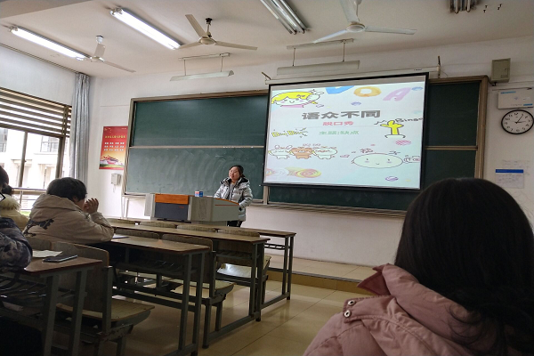 本次活动于下午三点在崇文楼3-103教室举行,场内提前布置到位,评委以及观众都纷纷有序入场,选手们在认真准备发言。首先由主持人宣布开始,选手们依次上场表演,中间穿插了歌曲和有趣视频,使得活动氛围更加浓厚。最后,由主持人公布比赛结果,分别颁发一二三等奖。