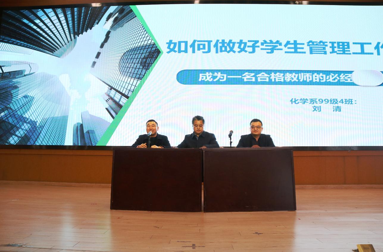 习近平总书记考察北京师范大学时在讲话中指出“四有”好教师的内容:有理想信念;有道德情操;有扎实学识;有仁爱之心。在新政策的教育改革背景下,教师的专业素养、业务能力的提升愈发重要。为提升师范生的专业能力和实际班级管理能力,在学院周院长的部署下,19级、20级、21级师范生于11月12号下午两点在崇文阶-106共同参加淮阴区开明中学刘清老师的工作经验讲座。
