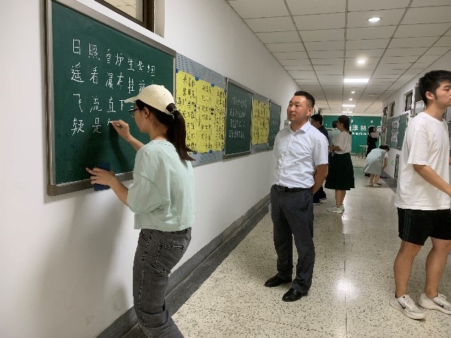 本次大赛包括书写(钢笔字、粉笔字)、口语表达和模拟授课。九名选手已于6月1日完成了书写比赛,下午依次抽取顺序和题目进行口语表达和模拟授课。口语表达考察师范生应该拥有的教师专业素养,即指在面对问题时在一定时间内能够运用教育、教学理论进行分析,并阐述观点、表达见解,同时具备一定的语言组织能力。场上九名选手都给出了十分优秀的回答。模拟授课项目中,各位选手进行十分钟课堂教学片断的展示。这个项目考察了师范生的教学基本功。场上九名选手依次展示,都给出了十分优秀的答卷。每名选手展示后,评委老师都结合选手的实际情况给出了点评和改进建议。