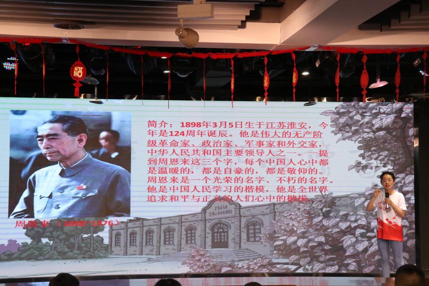 青春逢盛世,奋斗正当时。化院暑期社会实践小分队在指导老师的带领下,前往江苏省淮安市清江浦区图书馆,进行了周恩来“楷模精神”主题宣讲活动,向青少年学生宣讲周恩来同志的崇高品德,活动通过故事宣讲、短片观看、问题互动等方面来引发思考,让在场成员充分体悟周恩来同志全心全意为人民服务的精神,最后宣讲团成员们与少年儿童热情互动,并鼓励他们从小树立起“为中华之崛起而读书”的伟大理想信念。