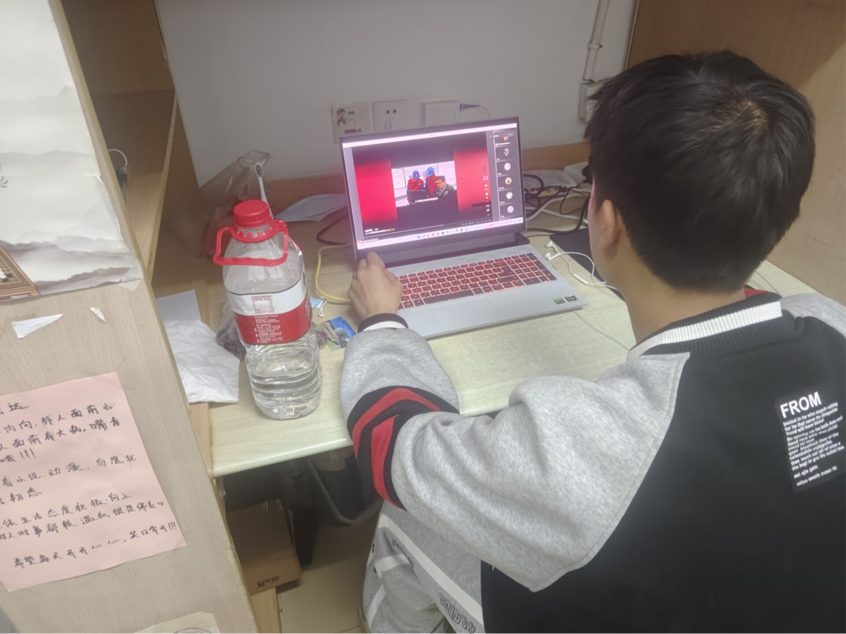 图为杨涵同学在寝室上团课  封骁摄