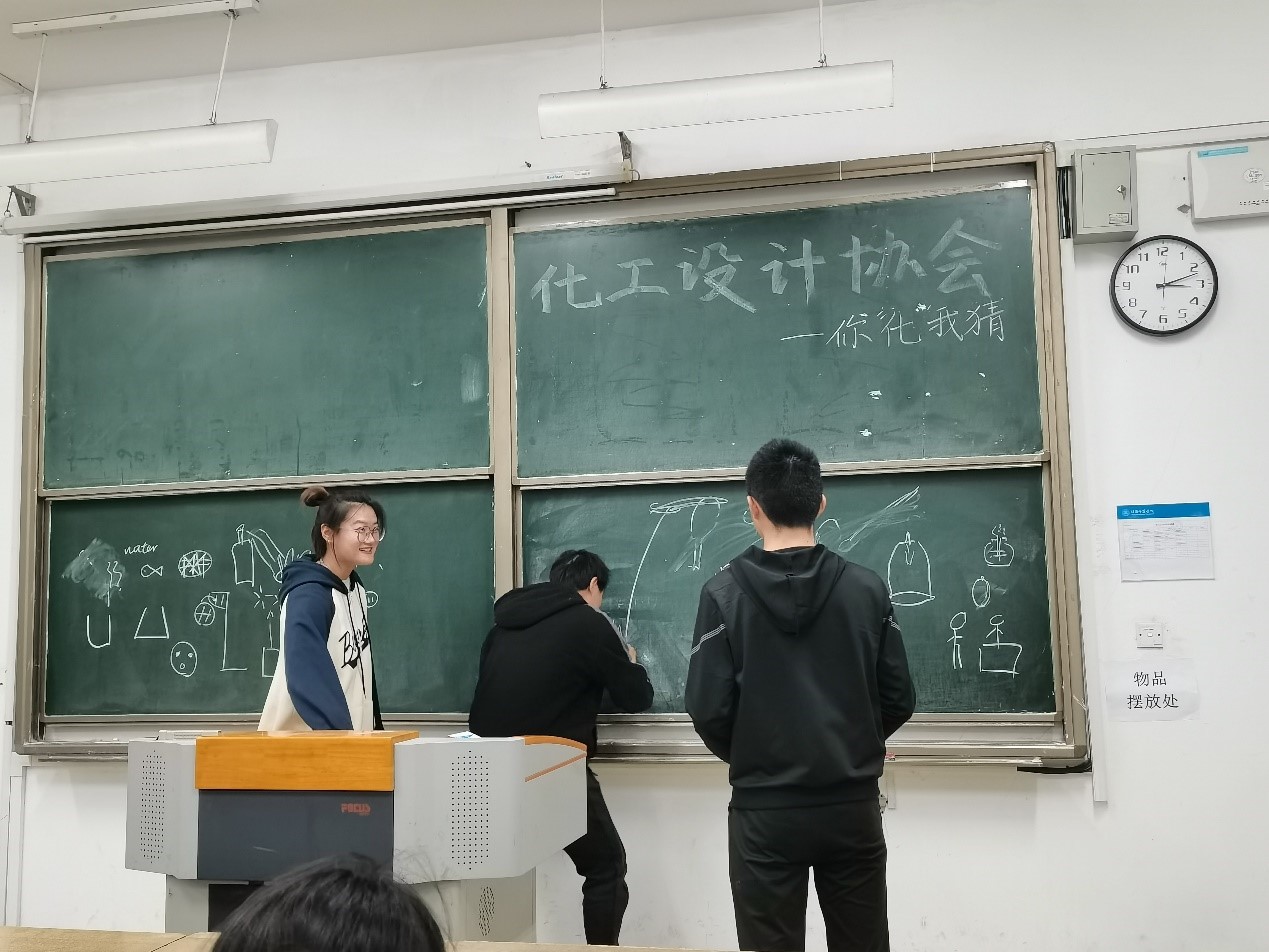 11月12日下午,化工设计协会于崇文楼1-105举办化学你“化”我猜活动,化学是一门充满神奇色彩的科学,具有有效性、科学性和严谨性。课堂上的化学表现化学的严肃,生活中的化学凸显化学的多彩,实验中的化学体现化学的技术,而绘画和猜谜中的化学突现化学的乐趣。本活动以“人人参与、经历过程、体验快乐”为宗旨,通过你“化”我猜活动进一步激发学生的求知欲和学习兴趣,鼓励学生积极参与学习实践活动,以丰富化学的知识为载体,提高学生的化学素养。
