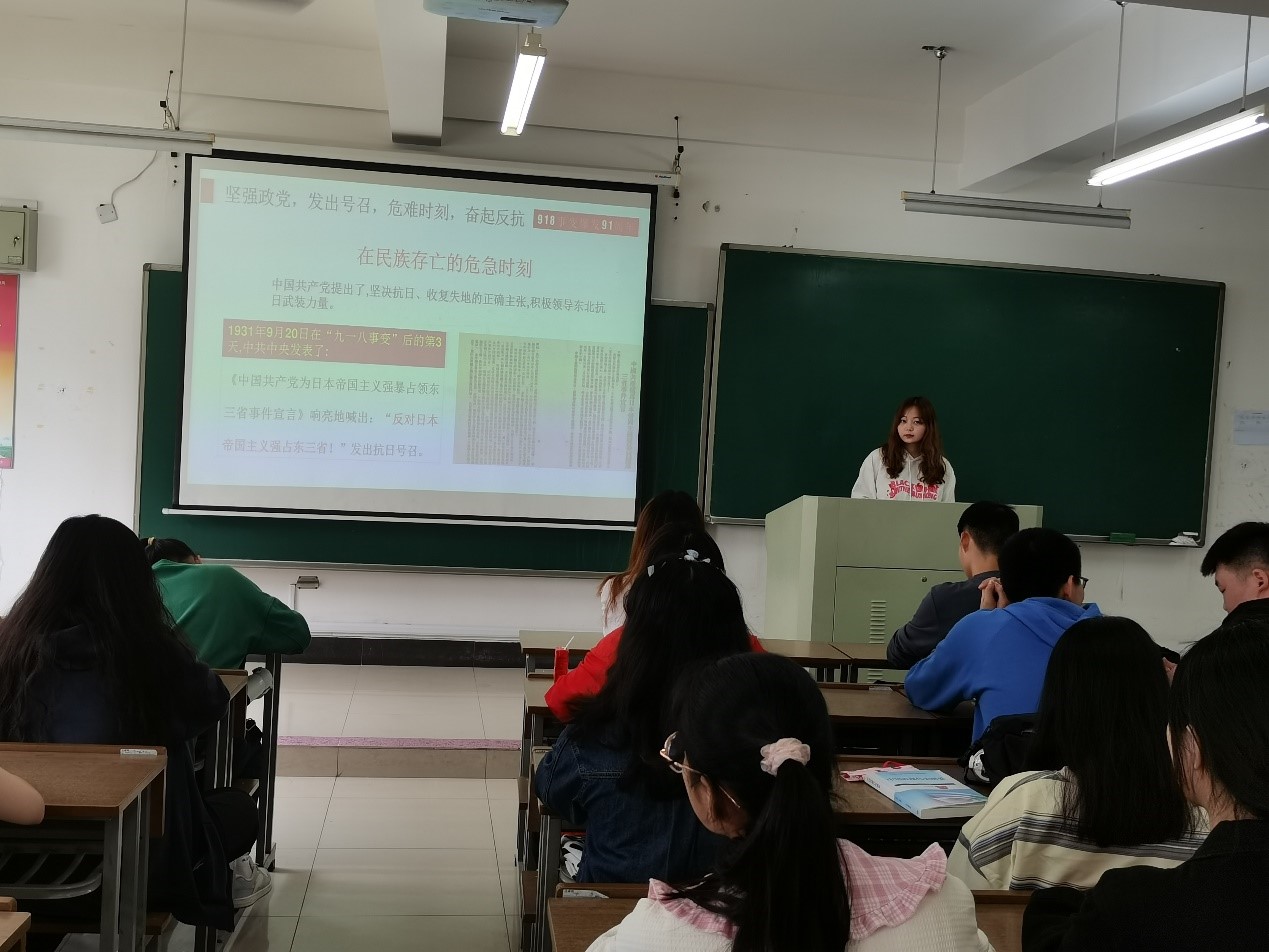 首先,由蒋恬惠介绍本次宣讲活动的主题:铭记历史吾辈自强。然后,通过五个小板块来讲述我们历史的历程,分别是:讲述历史的悲惨状况;到党的成立与兴起,再到我国人民的团结一致;通过影像告诉我们,历史不能被遗忘,要铭记历史,自立自强。之后,由蒋恬惠详细介绍这些板块的内容,通过观看影像的方式对这些成就进行了更加深入的了解,并且对现场同学的提问做出了详细的解答。最后,回望九一八,我们要树立历史思维,汲取历史教训,获得历史智慧,始终居安思危,大步走向中华民族伟大复兴道路!
