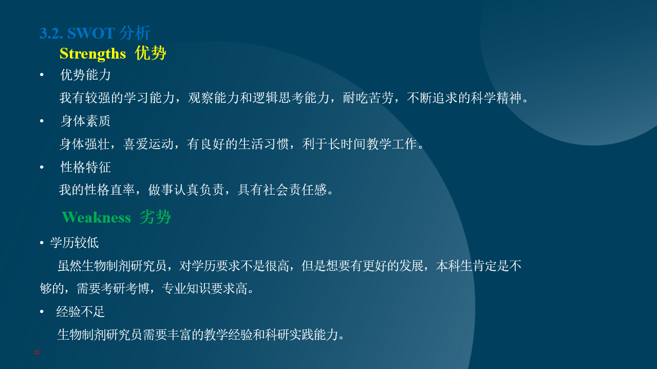 图为此次大赛一等奖作品同学对自我优势和劣势的分析