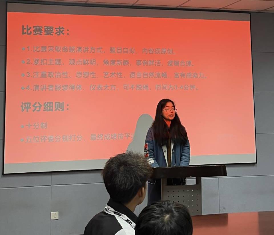 第一环节:主持人做演讲比赛开场白。化院信息宣传部部长闫硕同学就本次活动举办意义做出积极阐释,详细讲解了比赛要求、评分细则,并公布了此次活动评委。