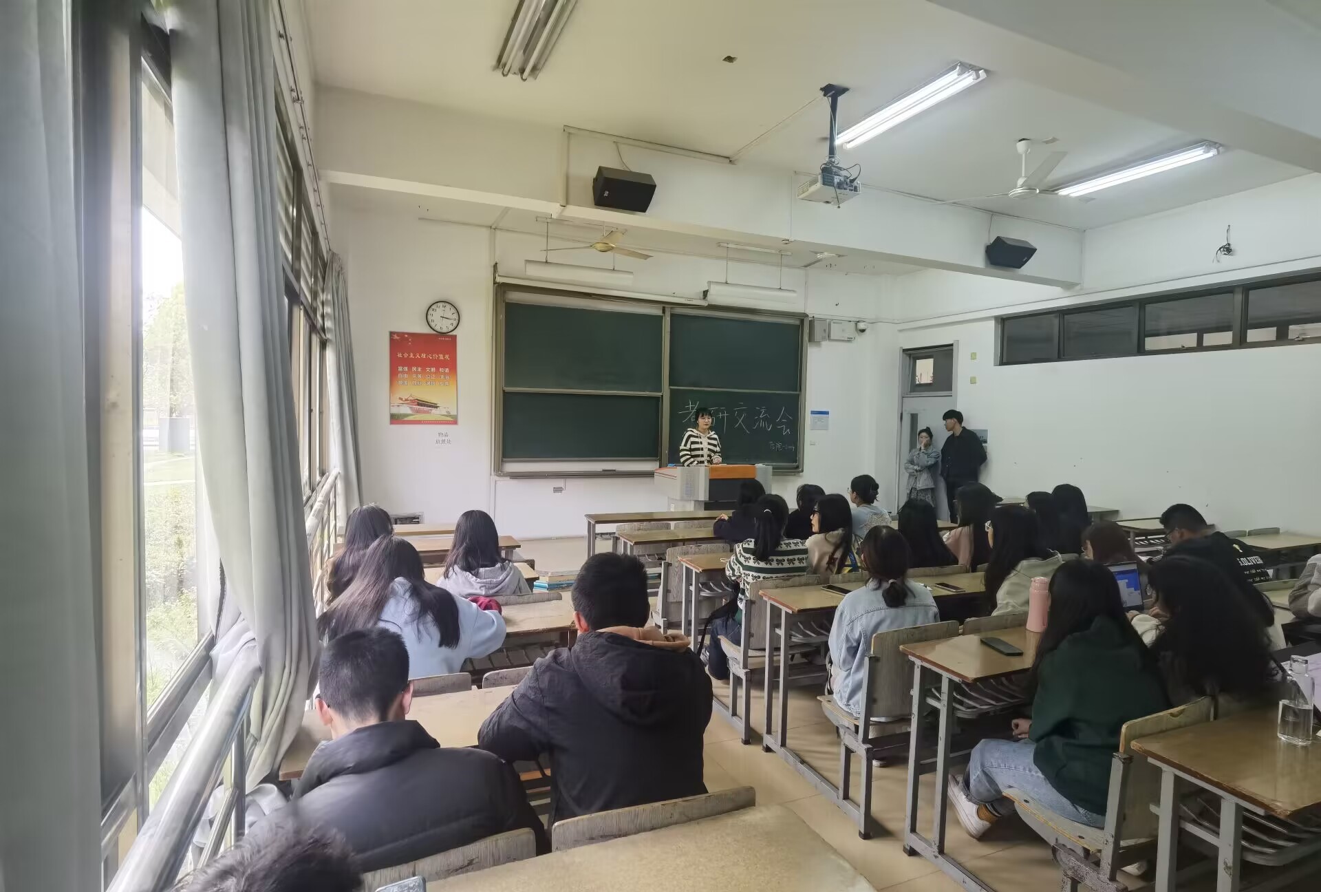 图为学姐向同学们讲述考研经验