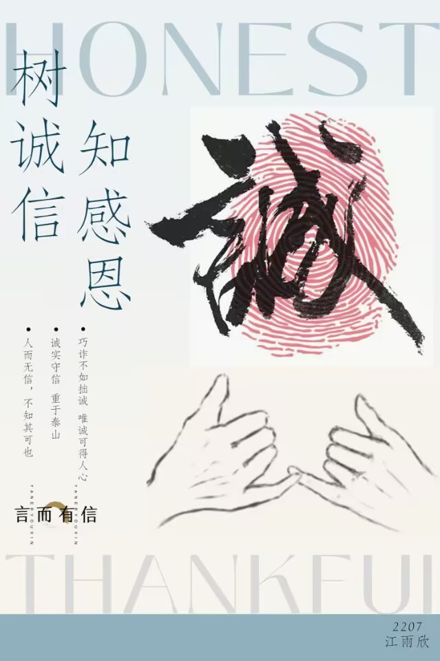此次活动由叶娟老师为领导的诚信教育小组组织,并评选出了以下优秀作品: