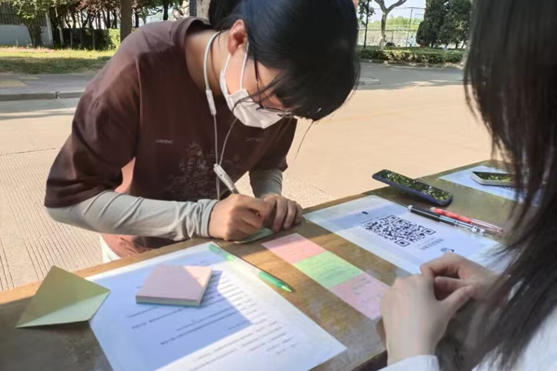 5月20日下午,77779193永利官网心理志工部在理工楼食堂外举办“心声漂流”悄悄话传送门活动。