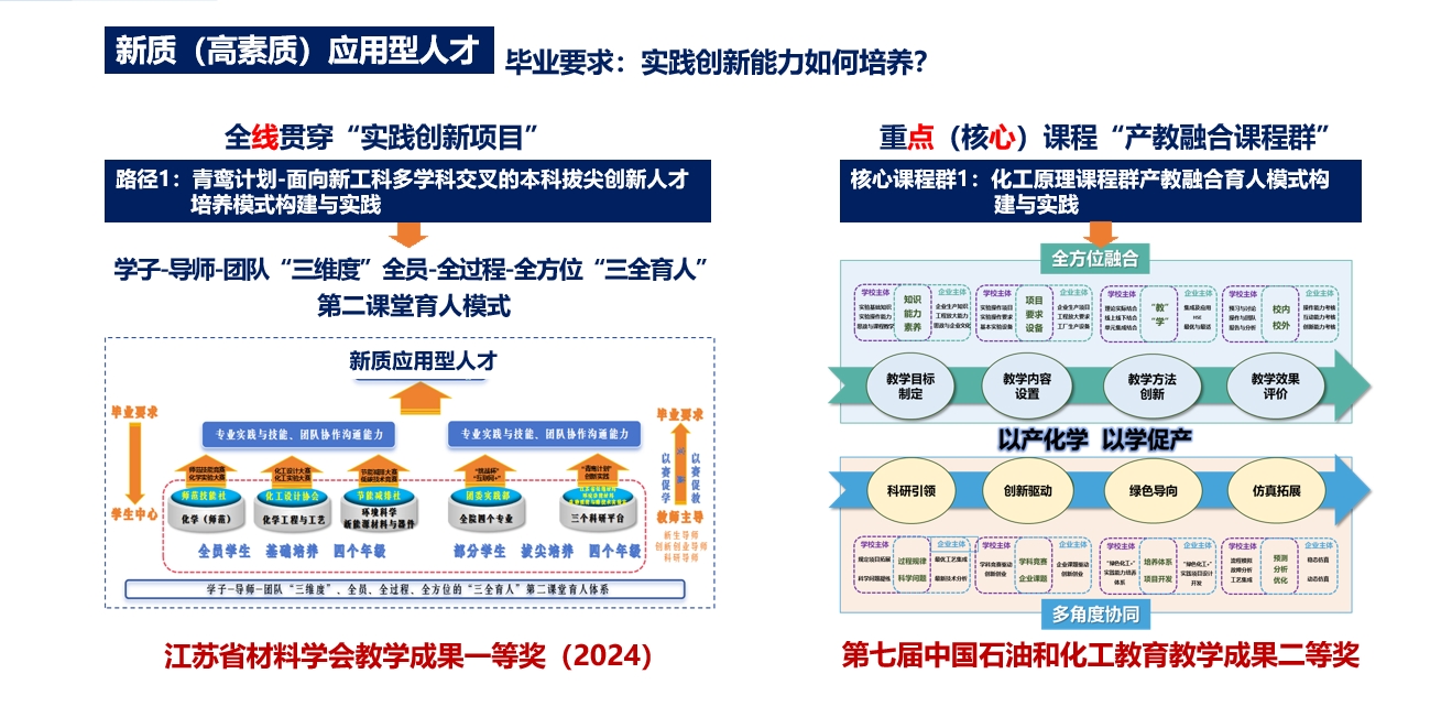 本专业服务化工行业“高端化、智能化、绿色化”发展需求,立足江苏,面向长三角,培养德、智、体、美、劳全面发展,具备扎实的自然科学与化工专业知识理论基础,通晓化工过程的基本原理、化工专业技能与研究方法,具有较强的团队与敬业精神、社会责任感和实践创新意识,能够在化工行业及其相关领域从事产品研发、工程设计、生产操作与优化、生产管理以及科学研究等工作的高素质应用型人才。