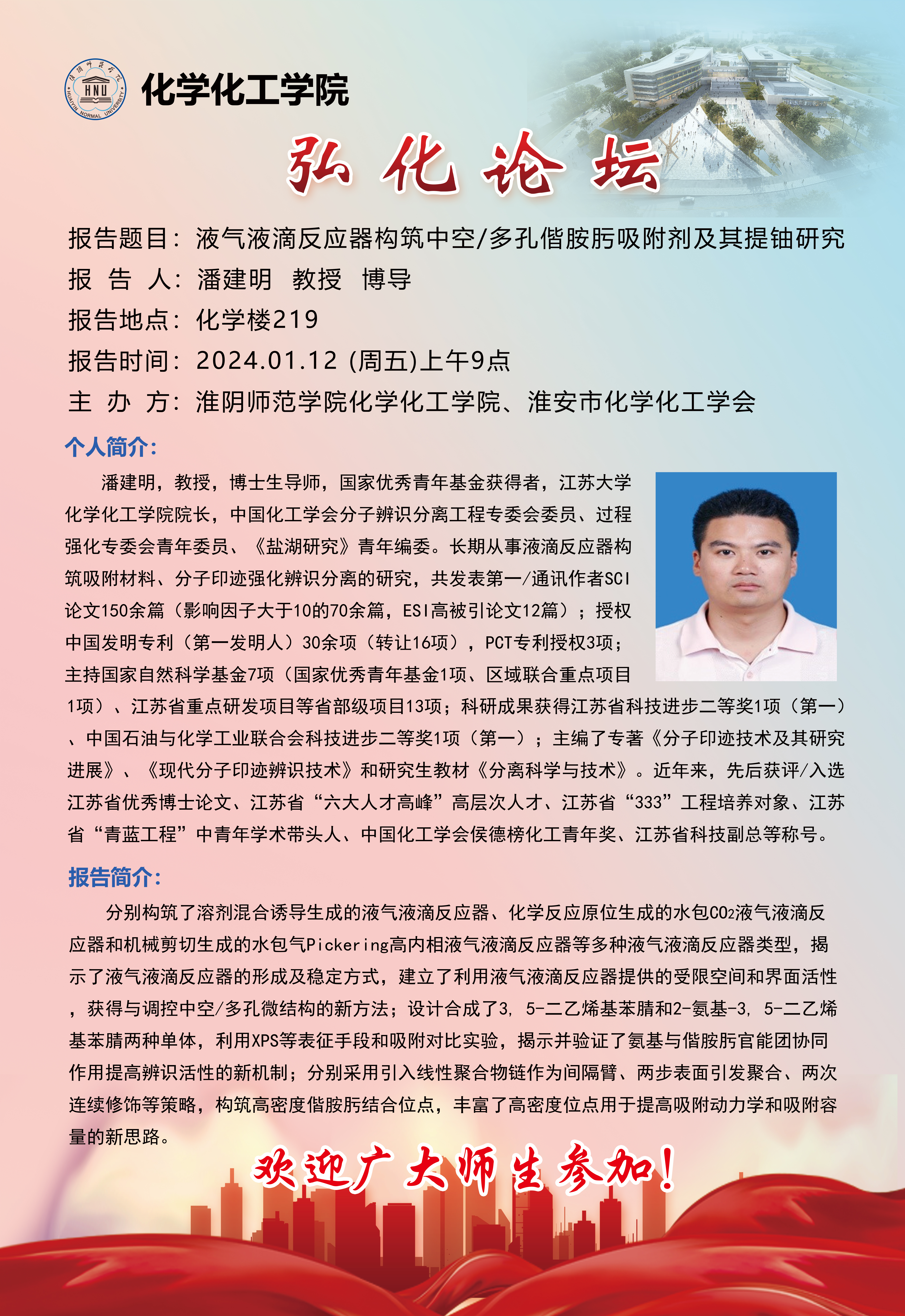 【弘化论坛】潘建明:液气液滴反应器构筑中空/多孔偕胺肟吸附剂及其提铀研究