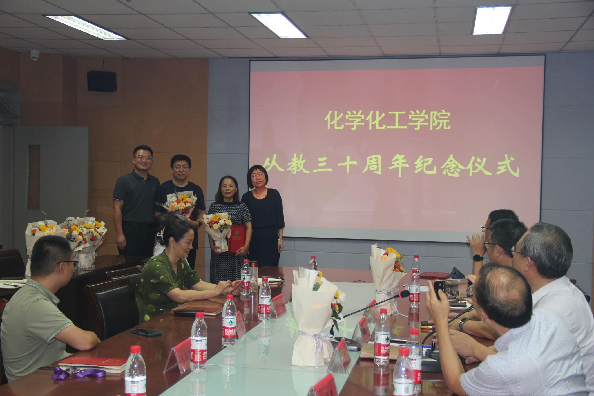 作为学院传统,从教三十周年纪念仪式上,副院长刘晓燕 、院长助理严玉波给阚玉和和马奎蓉老师颁发从教三十周年荣誉证书,用鲜花感谢他们为教育事业的辛勤付出。