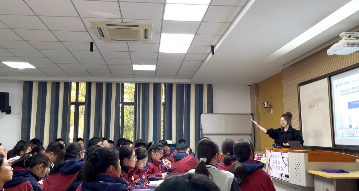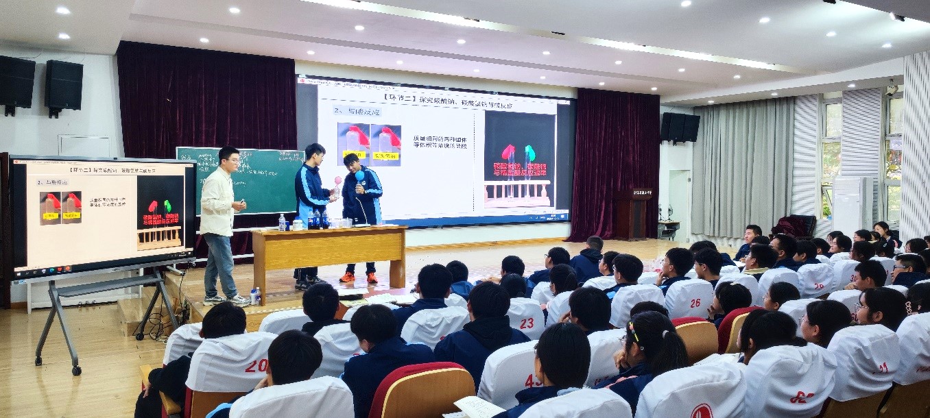 10月23日,2021级实习生沈雅楠和彭雪莹在淮阴师范学院附属中学开设了两节教育实习公开课。沈雅楠以北京冬奥会火炬“飞扬”的设计任务为情境,带领初三学生一同探索了《化学反应发生的条件》。彭雪莹面向高一学生,从原子结构、化学性质、制备与储存条件等方面讲授了《钠的性质与制备》。2022级全体师范生参加了见习观摩。