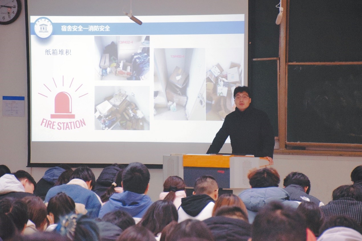 会议尾声,李老师着重强调了内务整理细则、宿舍用电安全以及宿舍文化的重要性。他通过宿舍的实际案例展示,详细说明了整洁环境对学习生活的重要性,呼吁同学们要筑牢安全防线,共建文明宿舍。李老师的发言掷地有声,赢得了同学们的热烈掌声。
