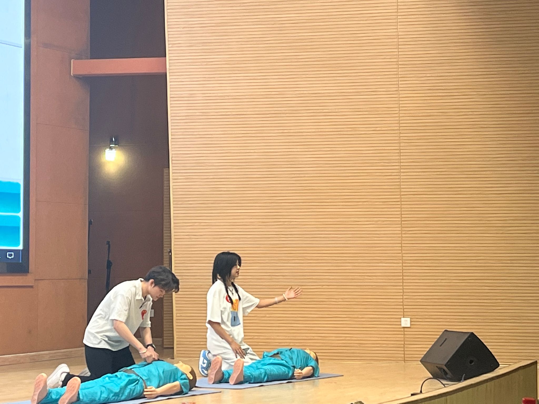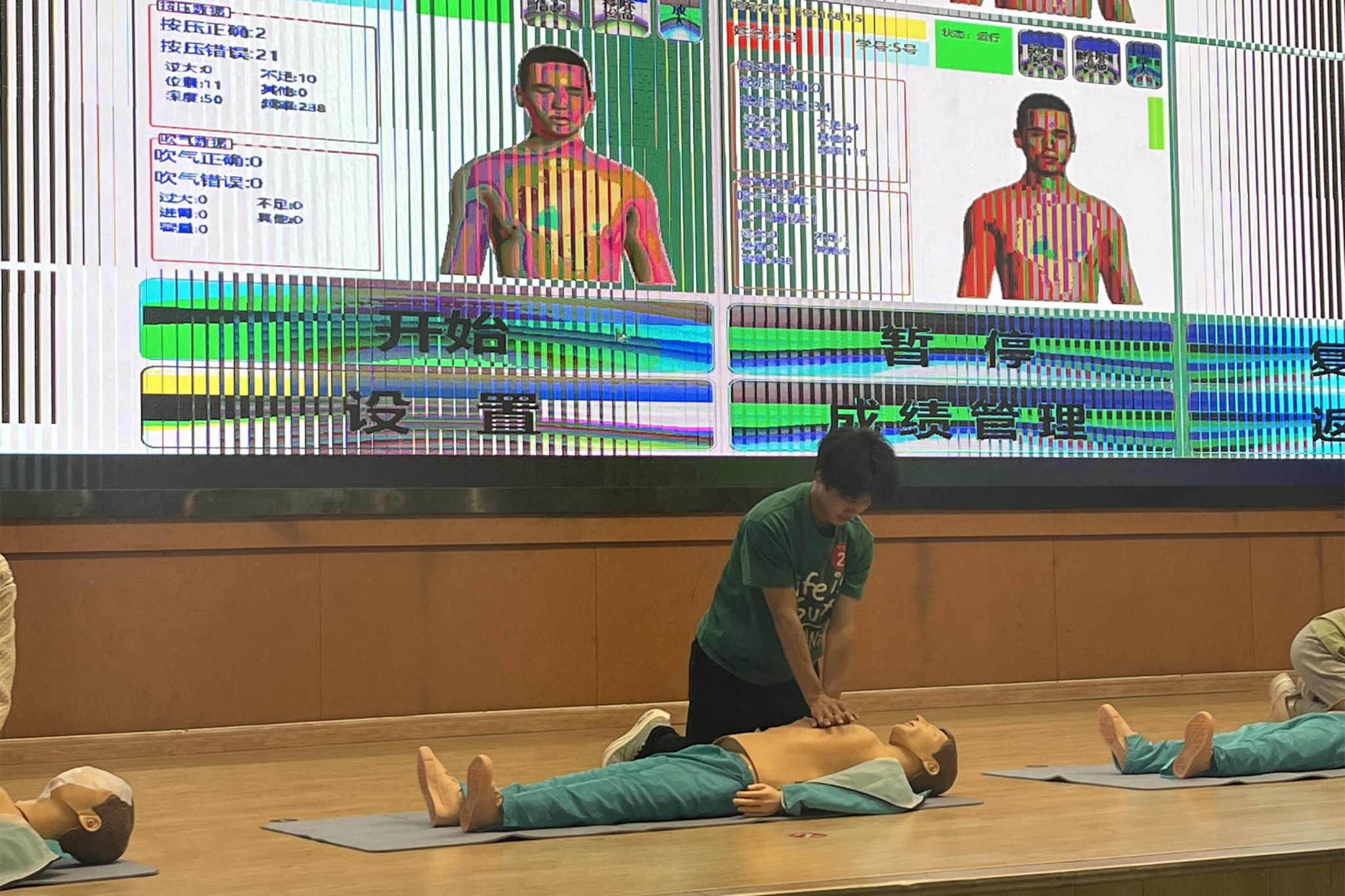 比赛现场,三位同学选手们冷静沉着、配合默契,以扎实的理论基础和娴熟的操作技能赢得了评委们的一致好评。尤其是在心肺复苏操作环节,选手们动作规范、力度适中,充分展现了专业的急救素养。