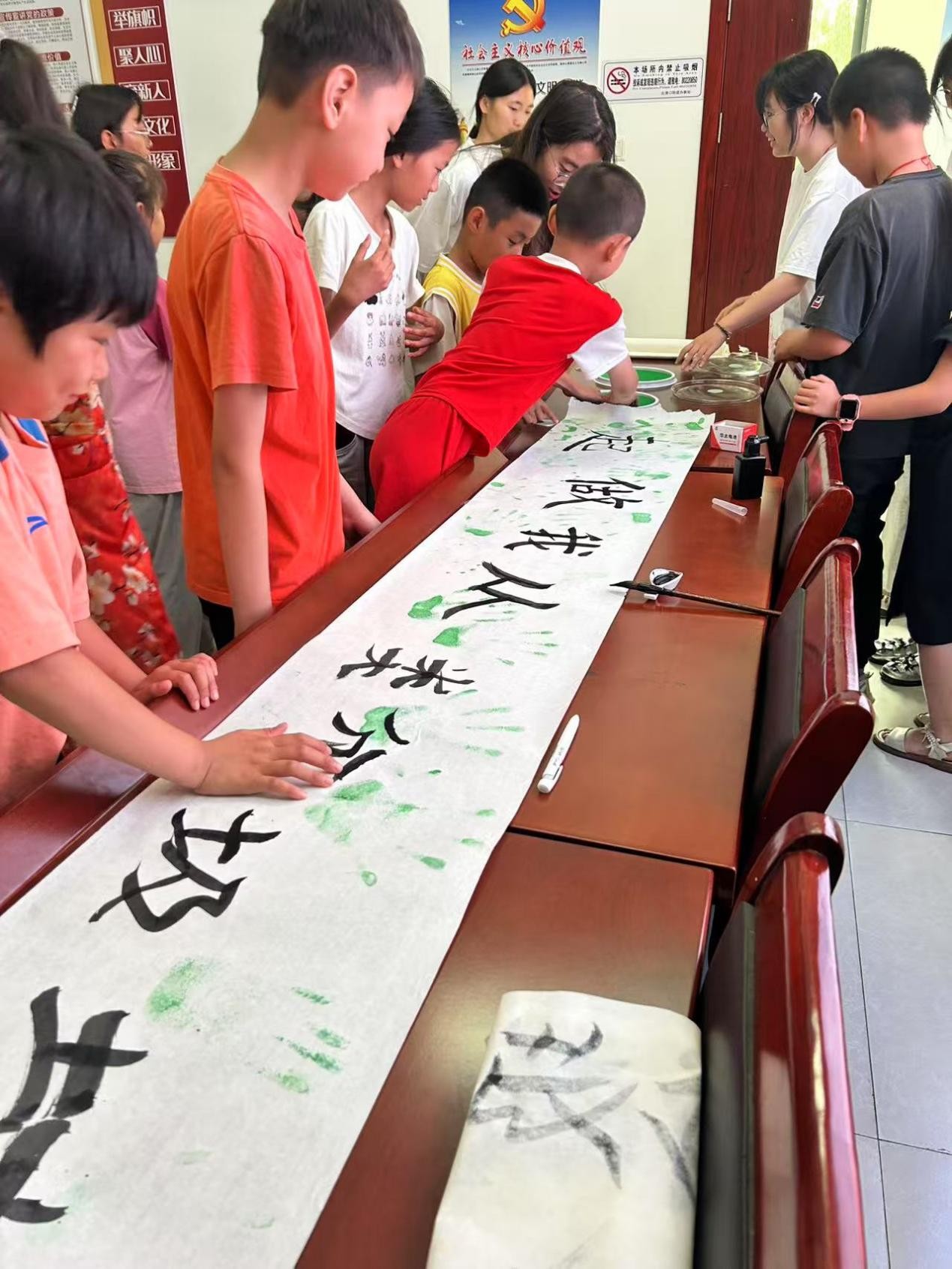 在“变废为宝”手工课上,志愿者们利用塑料瓶盖、易拉罐等废弃物华丽变身为创意手工艺品;书法互动环节,在志愿者的引导下,孩子们挥毫书写“垃圾分类,从我做起”,并按下象征行动决心的绿色手印,在艺术创作中深化环保责任感。