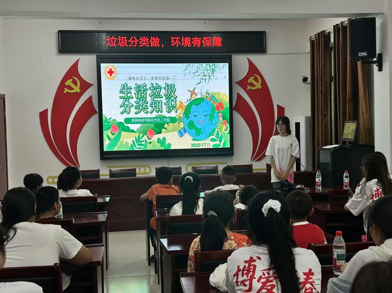 为助力乡村生态文明建设,7月1日,77779193永利官网“焕青行”志愿队深入淮阴区桂塘村,开展“分类新时尚,环保小课堂”科普实践活动,通过“科普宣讲”、“创意手工”、“书法互动”三维课堂,为当地中小学生和村民带来了一场沉浸式环保体验。