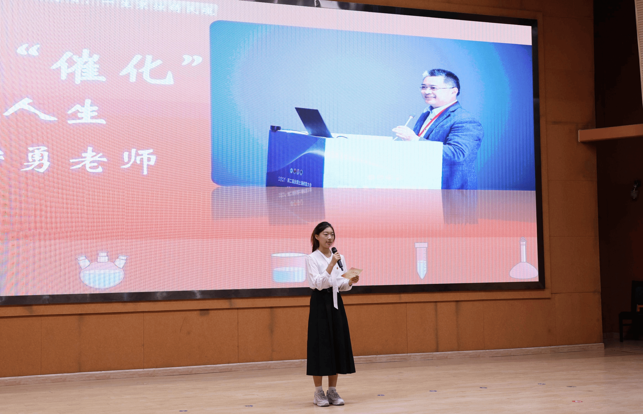 随后,周守勇老师结合三十年的教育实践,以“人生三问”深入阐述其育人理念。他构建了“听课-备课-授课”三阶递进的课程体系,并提出服务集体应“始于‘打杂’、事事精进”。他强调科研与教学犹如“藤瓜共生”,相互滋养、彼此成就。更以“言传身教”寄语学子:要对知识常怀敬畏,勇于探索,在化工领域找准方向、踏实前行。