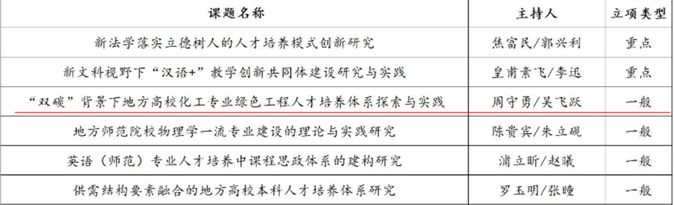 本次教改立项内容紧扣时代发展脉搏,对化工专业人才培养与“双碳”背景紧密契合,研究专业的人才培养体系改革研究、课程体系与教学质量保障体系研究、教学内容更新与教学方法改革研究、教师教学素质提升研究与实践、实践教学改革与大学生创新创业能力培养研究等。