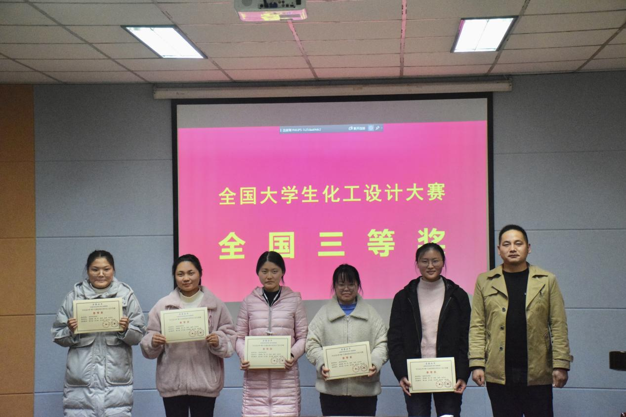 首先,由吴飞跃老师进行化工专业的介绍,吴飞跃老师从专业发展沿革、师资力量、专业建设成效及学生发展等几个方面向21级化工专业新生们一一展示,同学们对化工专业逐渐了解并更加认可。接着,由在全国大学生化工设计竞赛中获得国家二等奖的“五丁出醇”团队汇报并展示了他们的比赛成果,高级别学科竞赛(省级以上)颁奖典礼中周守勇院长、李梅生副院长等颁奖嘉宾将含金量十足的国家二等奖、国家三等奖和华东赛区特等奖等奖牌和奖状一一颁发给获奖同学,这更是激发了学生对专业学习的热情,让他们对自己未来四年发展充满了期待。最后一个环节是“我与院长面对面”,在这个环节中同学们踊跃地提出他们心中的问题,有对化工专业课程的学习难的担心、专业课程学习的要求、专业发展的前景和趋势、化工在循环经济中的地位,以及毕业后如果从事化工行业工作的竞争性和优势如何体现等等问题,涵盖了学习、生活、就业等等方面的问题。周守勇院长及化工专业的各位老师们进行一一耐心解答,在鲜活的案例、具体而权威的数据,条理清晰、论证充足的分析面前,同学们彻底打消了心中还尚存的对化工行业发展的疑虑,眉头也舒展开来。