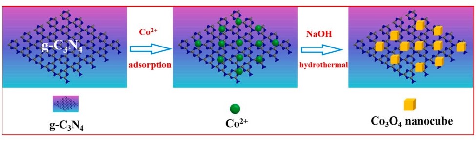 团队通过在2D g-C3N4纳米片表面负载形成四氧化三钴,成功制备了两种新型Co3O4/g-C3N4、Au/g-C3N4/Co3O4异质结光催化剂。这种新颖的结构有助于增大催化剂的比表面积,并且有效提高光生电子和空穴对的分离效率。