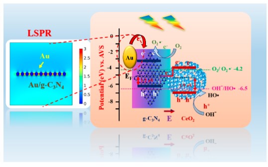 近日,淮阴师范学院环境能源催化团队分别在《Journal of Materials Science & Technology》(中科院SCI一区Top期刊,IF=8.067)和《Chemical Engineering Journal》(中科院SCI一区Top期刊,IF=13.273)上发表题为“A novel Z-scheme CeO2/g-C3N4 heterojunction photocatalyst for degradation of Bisphenol A and hydrogen evolution and insight of the photocatalysis mechanism”、“A novel Au/g-C3N4 nanosheets/CeO2 hollow nanospheres plasmonic heterojunction photocatalysts for the photocatalytic reduction of hexavalent chromium and oxidation of oxytetracycline hydrochloride”的学术论文。