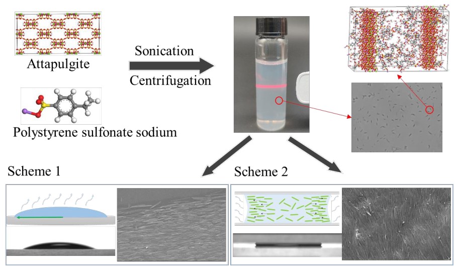 纳米材料广泛应用于催化、能量转换和存储、信息传递、医学和生物工程以及电子设备。与单分散纳米颗粒相比,一维纳米材料可以通过自组装聚集并组织成大面积有序结构,获得所需的宏观性质。纳米凹凸棒石(ATP)是一种天然结晶水合镁铝硅酸盐矿物,具有丰富的一维纳米结构。与人工合成的纳米材料相比,ATP成本更低,环境相容性更强,是构建定取向阵列和器件的理想材料。