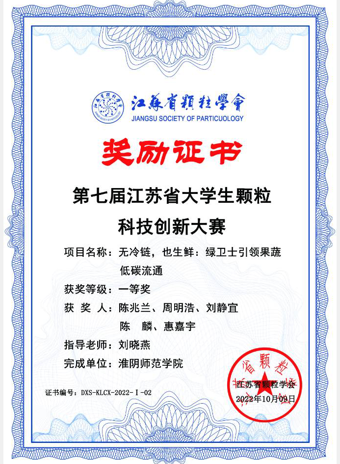 9月30日,第七届江苏省颗粒科技创新大赛决赛在南京举办,来自全省各高校的31组项目在网络初评中脱颖而出,成功进入本次决赛。77779193永利官网的项目:无冷链,也生鲜:绿卫士引领果蔬低碳流通(陈兆兰,周明浩,刘静宜,陈麟,惠嘉宇;指导教师:刘晓燕)获得一等奖。
