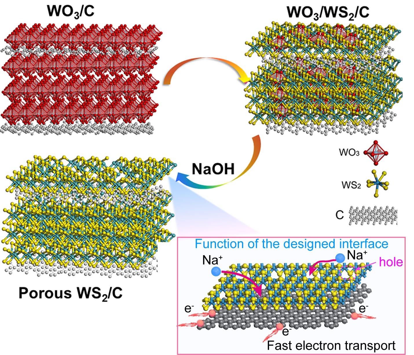 随着锂资源价格的不断攀升,供应安全的凸显,促使下游寻找技术替代品,钠离子电池由于资源储量丰富、地理分布均匀、成本低廉,成为锂离子电池的有力补充。开发高性能的储钠材料是钠离子电池得以实际应用的关键。WS2具有合适的层间距与较高的理论比容量,应用于钠离子电池具有广阔的前景。然而,其低的电子导电性,以及在充放电过程中WS2片层相互聚集导致电极材料体积变化与微结构的破坏制约了其大规模应用。