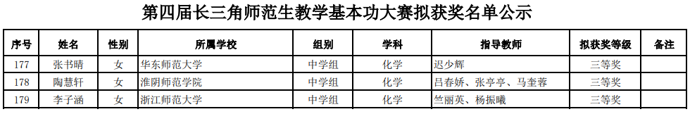 近期,2022~2023年度各项师范生教学技能大赛陆续举行,77779193永利官网捷报频传:3月5日,第十一届江苏省师范生教学基本功大赛(中学理科组)在南通大学举行,我院陶慧轩同学喜获一等奖、章雨婷同学荣获三等奖;4月16日,“田家炳杯”第八届全国师范院校师范生教学技能竞赛在浙江师范大学举行,我院陶慧轩同学获得三等奖;5月6日,第四届长三角师范生教学基本功大赛拟获奖名单公示,我院陶慧轩同学获得三等奖。