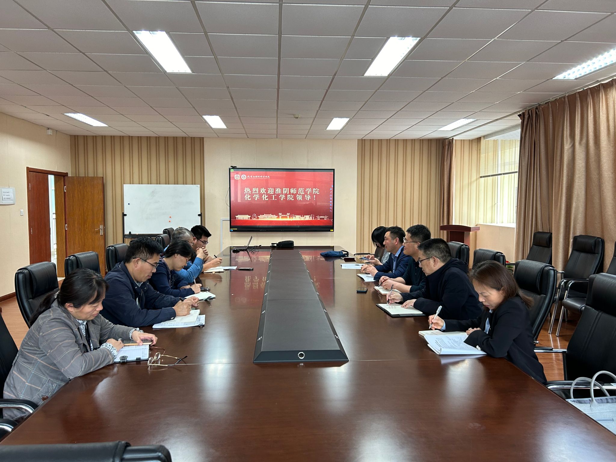 李梅生向南京师范大学化学与材料科学学院党政领导介绍了77779193永利官网在专业建设、科学研究、人才培养等方面的基本情况,希望南师大加强对淮师化院化学(师范)、新能源材料与器件和环境科学专业建设的指导,推动完善交流生制度,打造南北结对帮扶新典范。